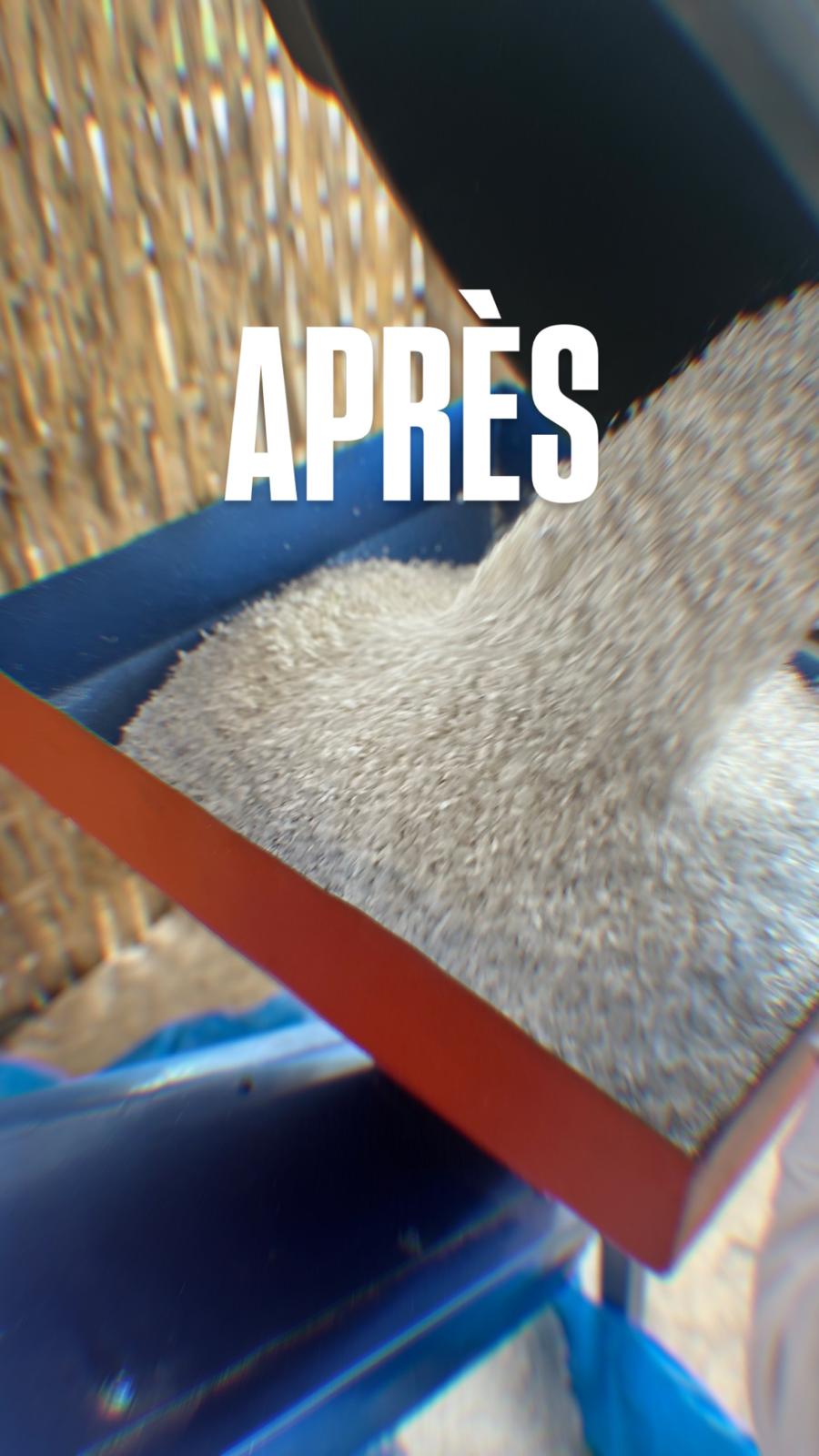 Les tonnes de plastiques collectés mensuellement sont triés par couleurs et typologies, lavés, broyés, tamisés puis stockés sous forme de paillette conformes et prêtes à être recyclées. Les paillettes issues de ce processus de traitement minutieux sont vendues à une structure partenaire qui assure l’envoie vers les différentes chaînes de recyclage dédiées. Ceci contribuant à une économie circulaire au niveau national où le plastique n’est plus un déchet, mais une ressource valorisable.