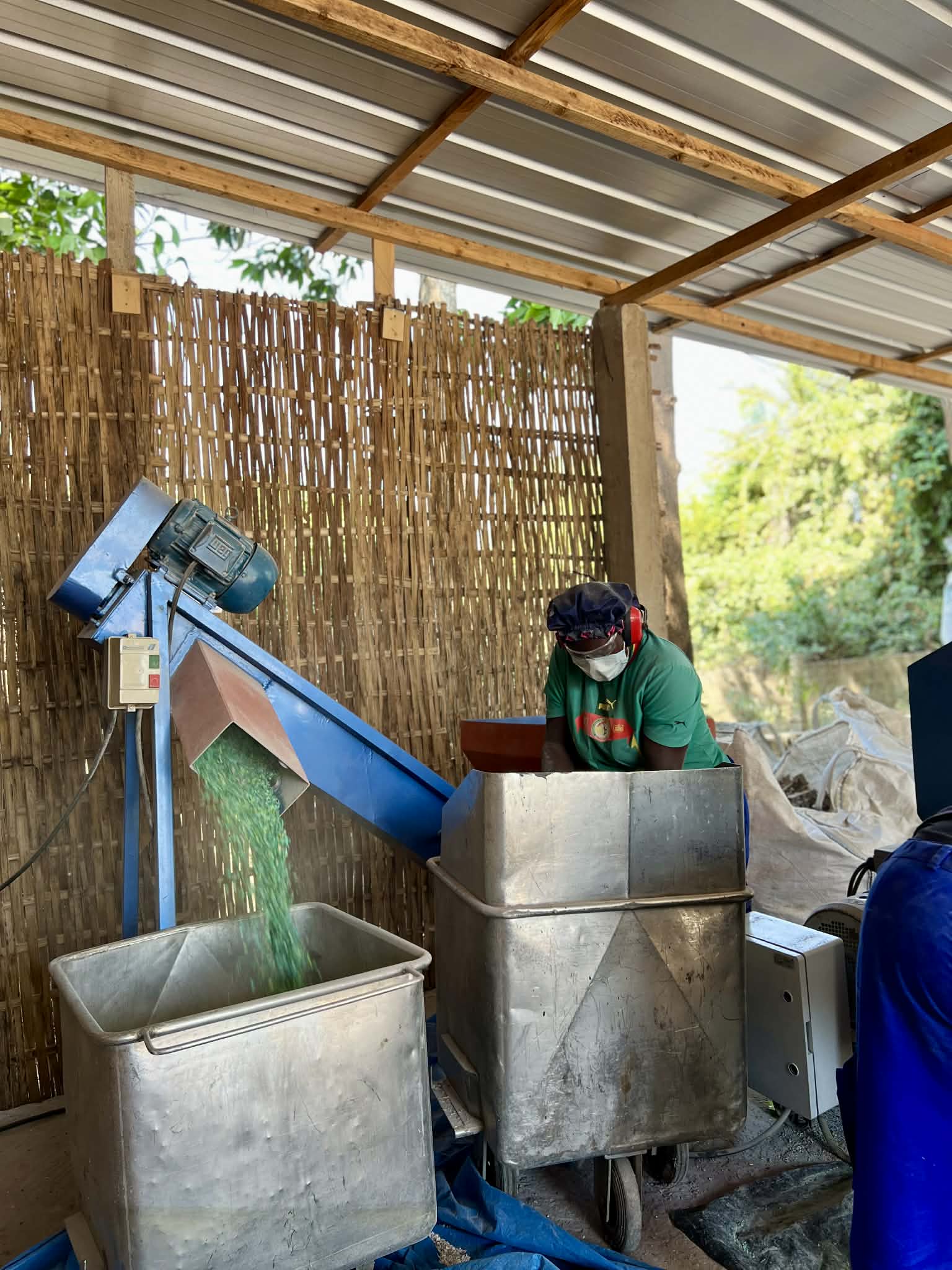 L’espace comprend plusieurs zones dédiées ; stockage déchets, espace de tri, lavage, broyage, tamisage et stockage final. L’Unité est opérationnelle grâce à une équipe de 5 femmes que nous avons formé aux métiers du recyclage (phase de traitement) et sous la coordination des co-fondatrices de Nio Far. Elles assurent le fonctionnement quotidien de la chaîne, tout en développant leurs compétences et leur autonomie économique.